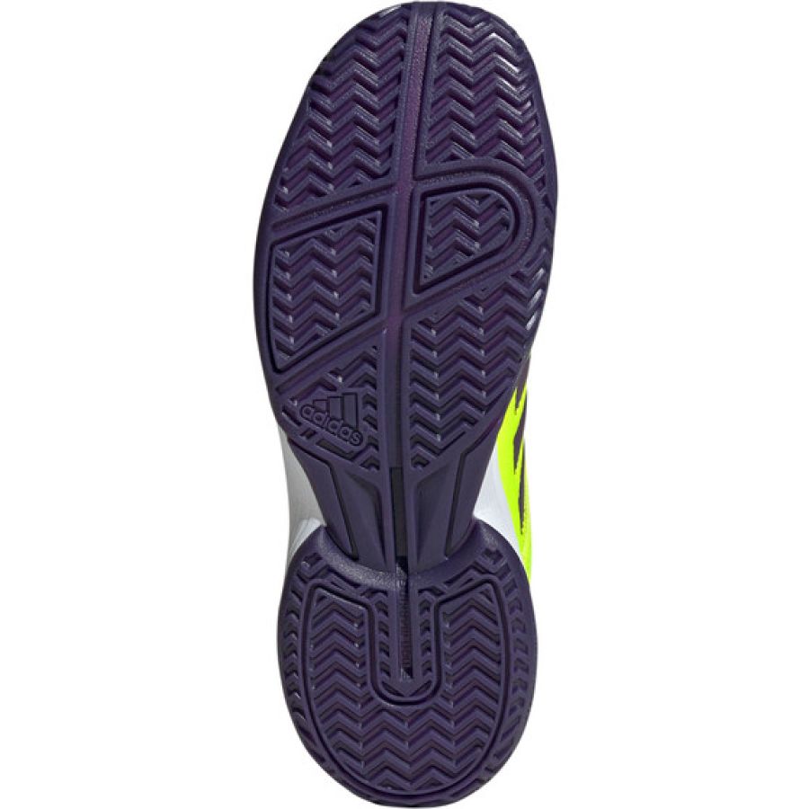 Heers op het veld met de adidas Speedcourt Kids indoorschoenen! De stevige, maar comfortabele rubberen loopzool levert stabiliteit zodat jij direct kunt reageren op elke bal. Het bovenwerk is gevoerd met ademend mesh om je voeten koel te houden als het er verhit aan toegaat.